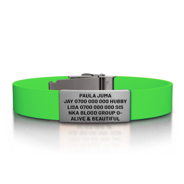 The Pro Black ICETAG comes with contrast engraving on a surgical grade stainless steel face plate making the all-business statement about you. Comes with a tri-fold double lock clasp on a silicone wrist band.
